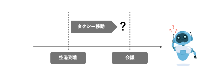 先程挙げた出張のアテンドの例では、搭乗するフライトを決めた後、空港から出張先までの移動時間を計算し、先方との約束の時間に間に合うか確認します。間に合わない場合はフライトの選び直しを実行します。