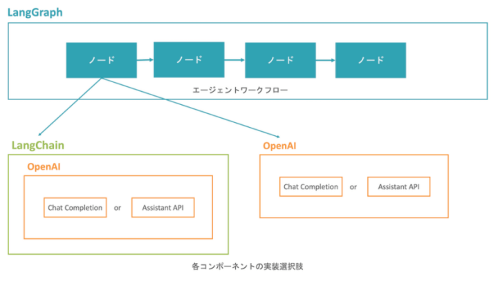 それぞれの目的や環境に応じて使い分けるという前提にはなりますが、特に制約がなければLangGraphでフローを組む、フローの中のノード処理は一旦シンプルなOpenAIライブラリを使う、ある程度全体のフローや処理内容が固まったら置換可能な箇所をLangChainで置き換えていくのが得策だと考えています。