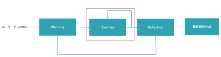 エージェント的な推論パターンとして、Stanford大学の教授であり、人工知能の第一人者とも言われるAndrew先生のエージェント講義の中で、以下の4つのデザインパターンが示されています。